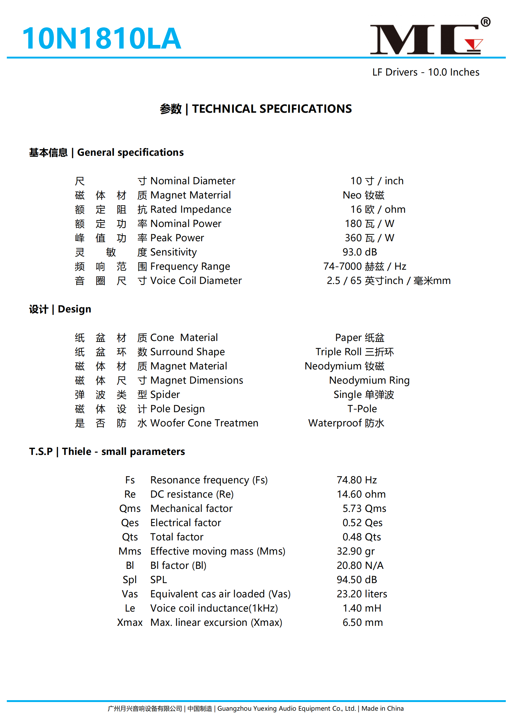 10寸,钕磁,65芯