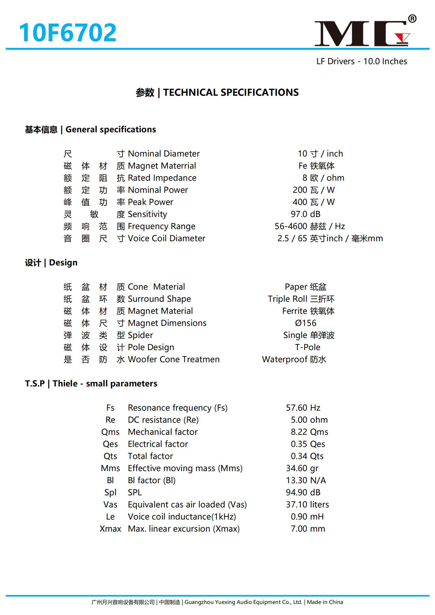 10寸,铁氧体,65芯